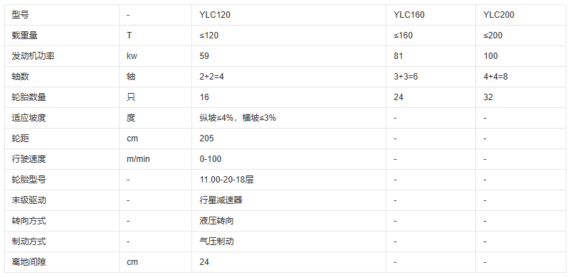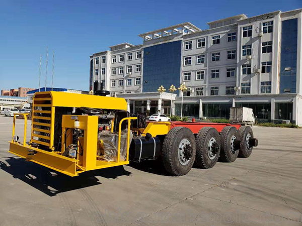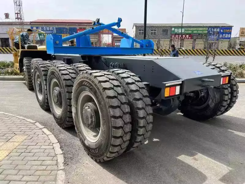 主車設置四缸或六缸柴油機經四級減速為整車提供驅動力。末級驅動為輪邊大齒輪或行星齒輪傳動。設置液壓轉向及氣剎功能。一般都設有多個前進檔和后退檔。副車設單缸柴油機為液壓轉向提供動力。運梁炮車兼有運梁和給架橋機喂梁的功能,主要適用于架橋工地、預制梁場等。